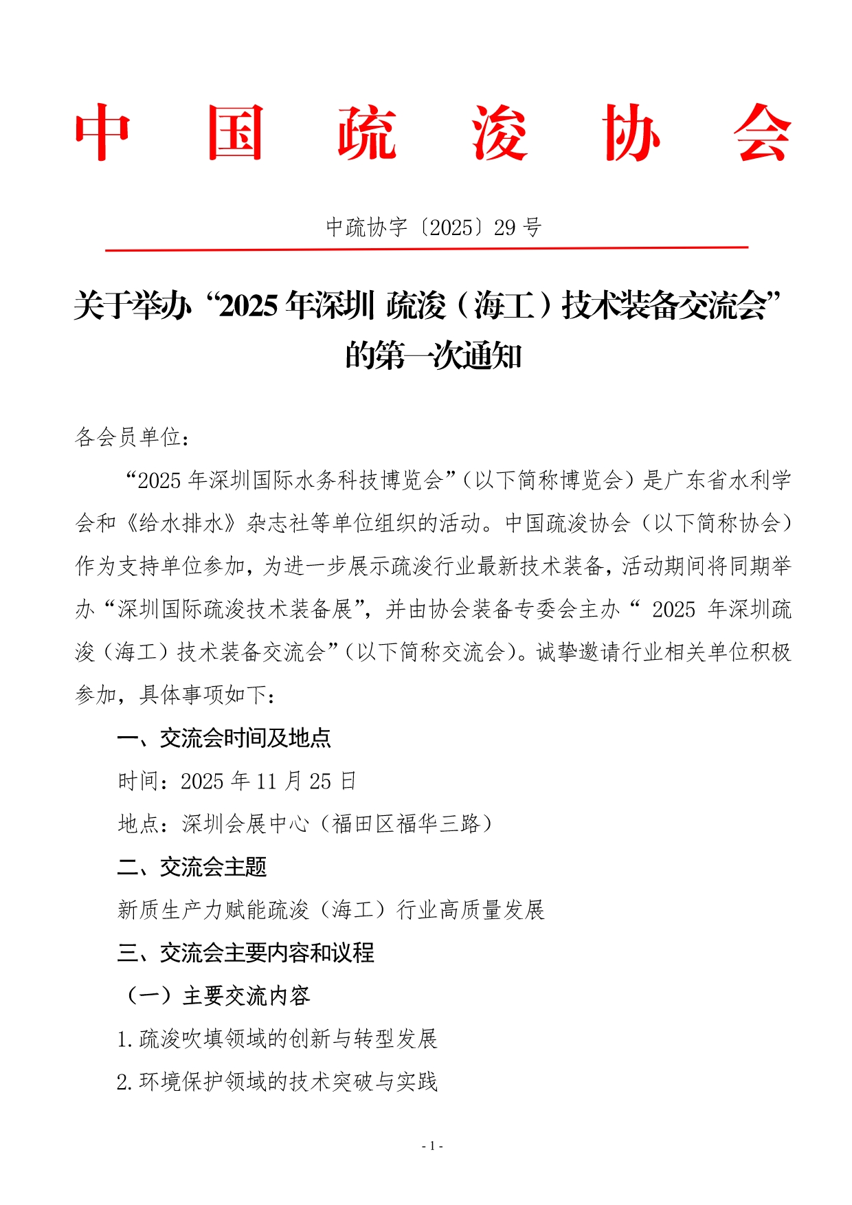 关于举办“2025 年深圳 疏浚(海工)技术装备交流会”的第一次通知